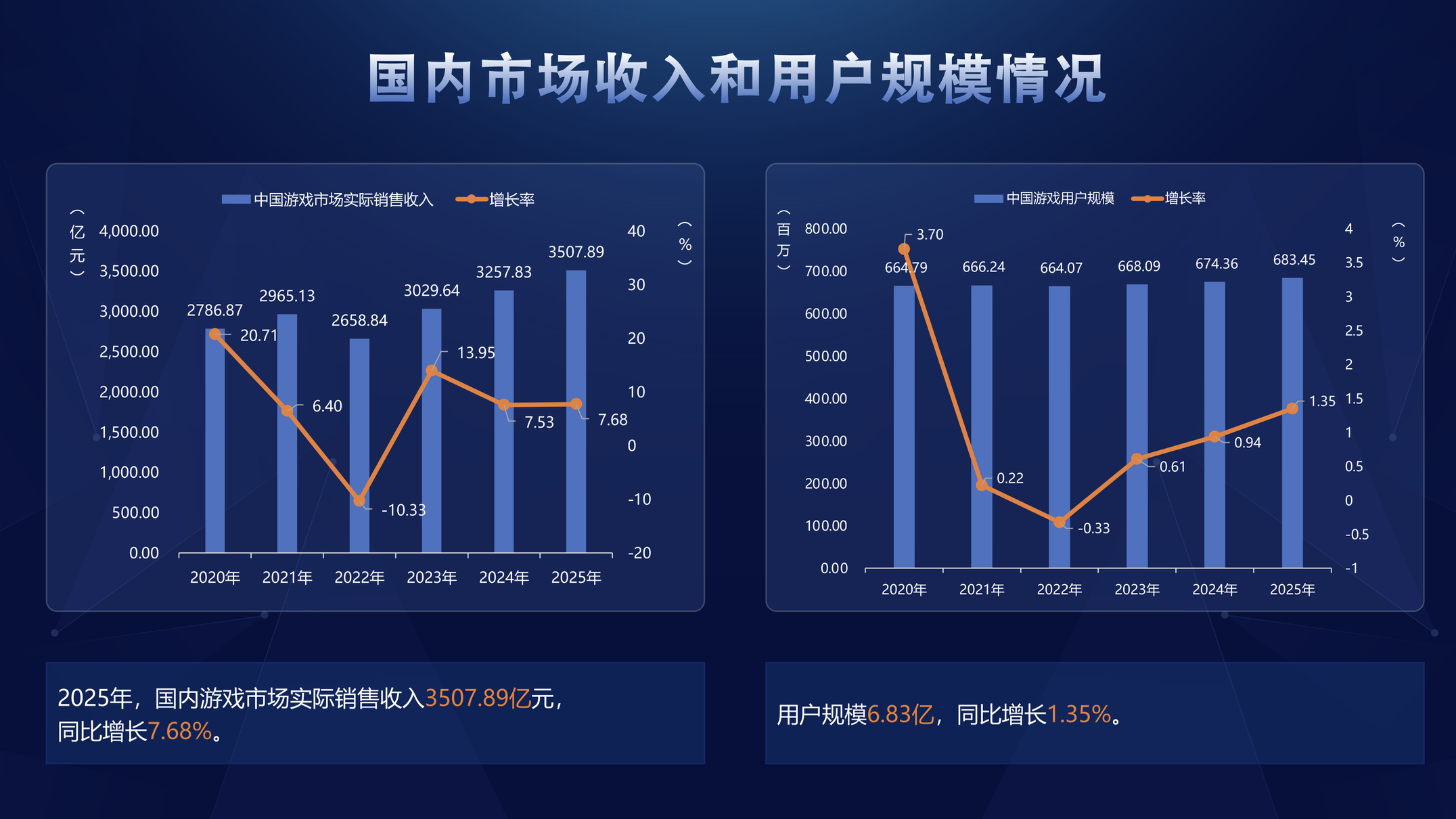 2025年,国内游戏市场收入约3508亿元,同比增长7.7%;用户规模超过6.8亿,同比增长约1.4%。数据创下历史新高。