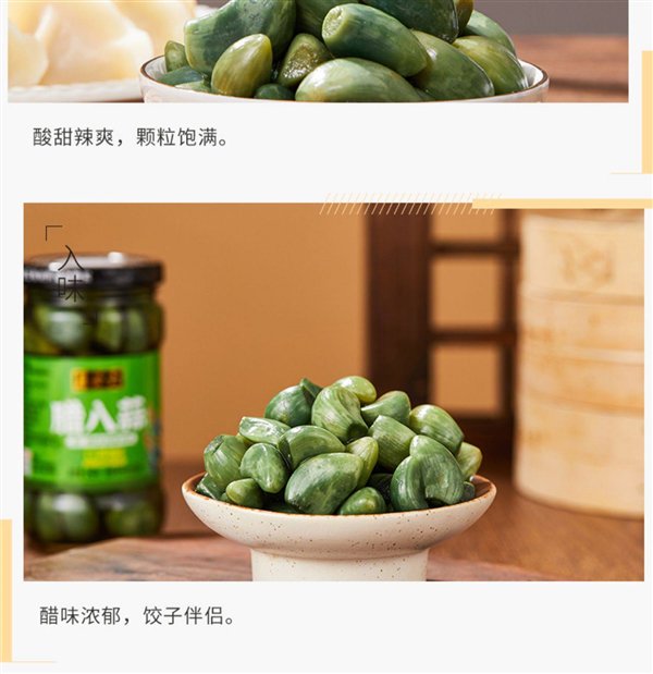六必居翡翠腊八蒜 290g * 2 瓶日常售价 22.9 元,下单领取 8 元冲量券。