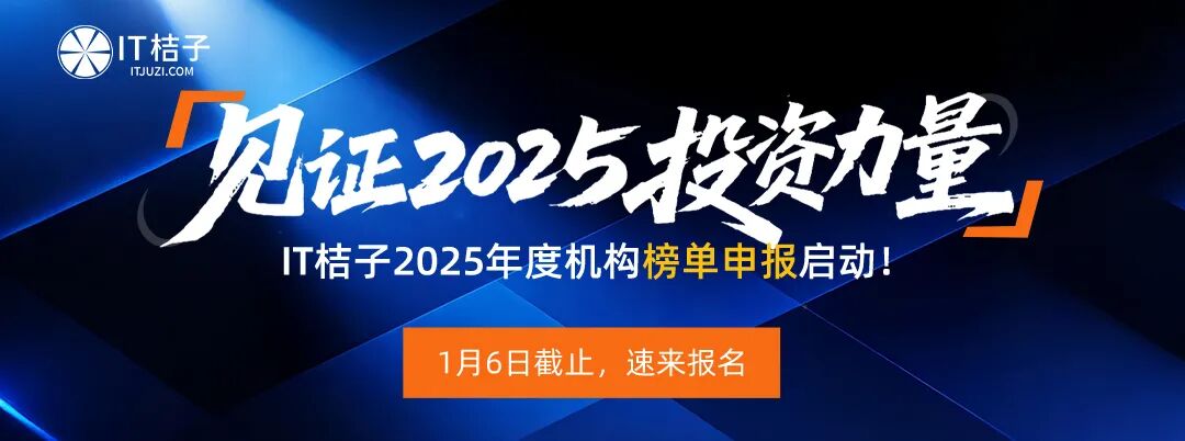 IT桔子"年度活跃机构"系列榜单正式开启申报,诚邀投资机构和FA机构提交2025年度数据。参与申报可提升行业影响力、获得权威背书、触达优质资源。申报截止时间为2026年1月6日,榜单将于1月中旬发布。
