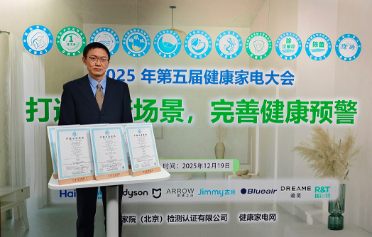 为了规范家电市场,提供家电产品健康设计指引,推动行业健康技术有序发展,2025年12月19日,由中家院(北京)检测认证有限公司主办的“2025年第五届健康家电大会” 以线上的方式在北京举行。