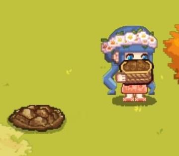 将篮子放下后,用石锄翻动土地,后续还会详细介绍石锄的使用方法。