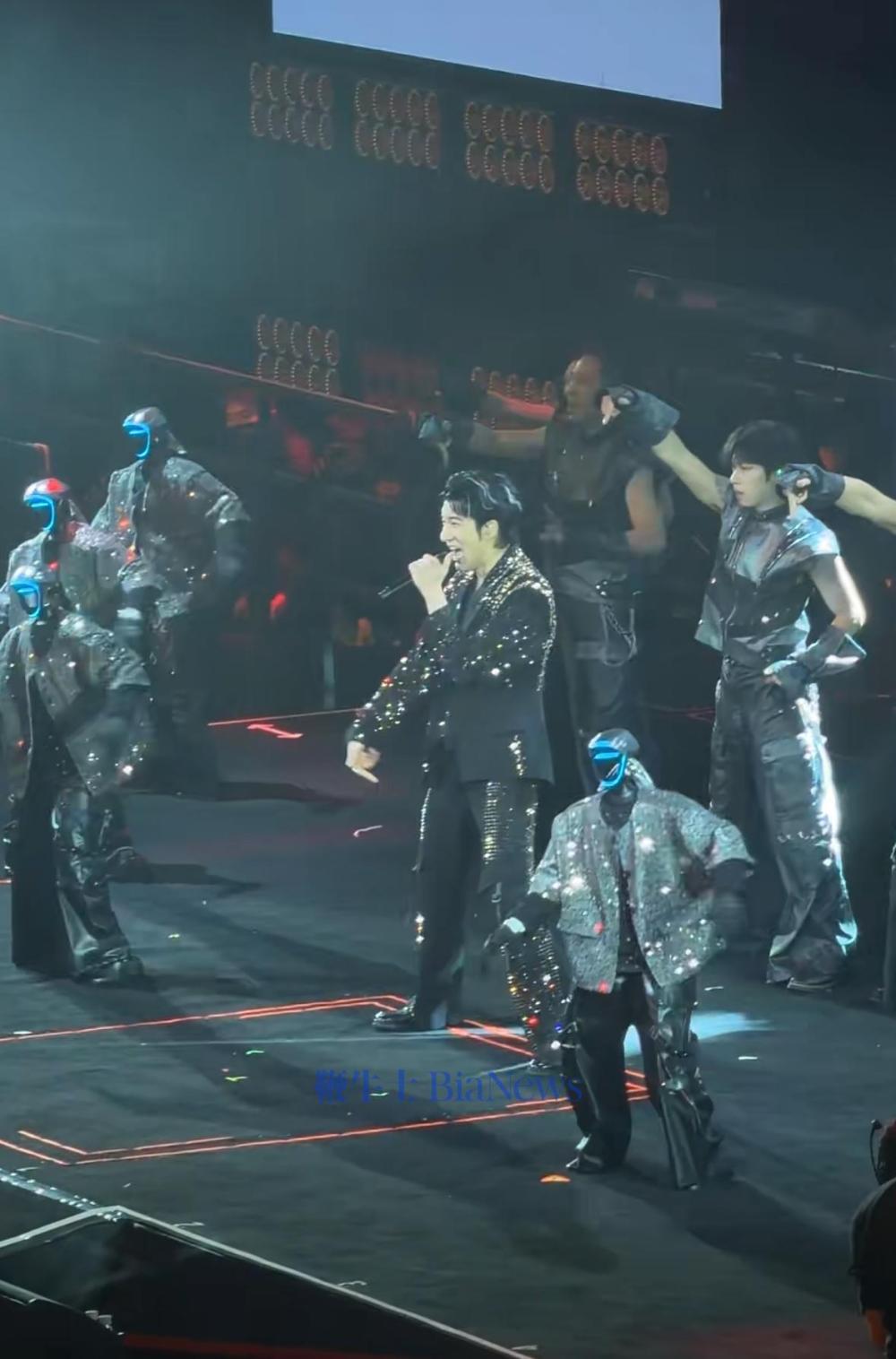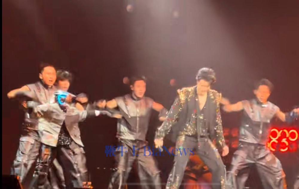 现场6名机器人身着银色亮片服装,卡点音乐节奏,动作与王力宏及其伴舞高度同步,最后表演以机器人一齐完成高难度“韦伯斯特”空翻结尾。