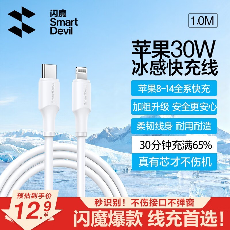 闪魔苹果数据线PD快充,满1元9.7折,券后12.51元