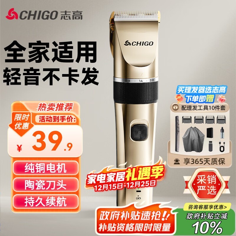 志高8801电动理发器家庭适用,到手仅44.33元!