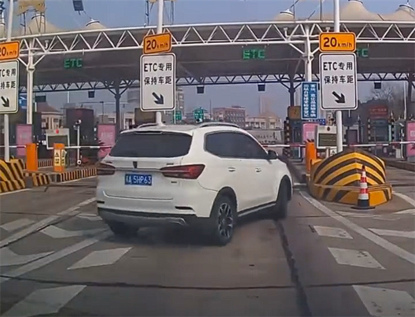 近日有女子驾车通过ETC下高速时,旁边车道一辆白色SUV突然插队挤到了她前面,女子明显经验不足,看到对方的举动后依旧开车往前蠕动,直接触发了ETC扣费。