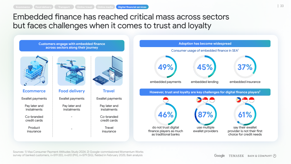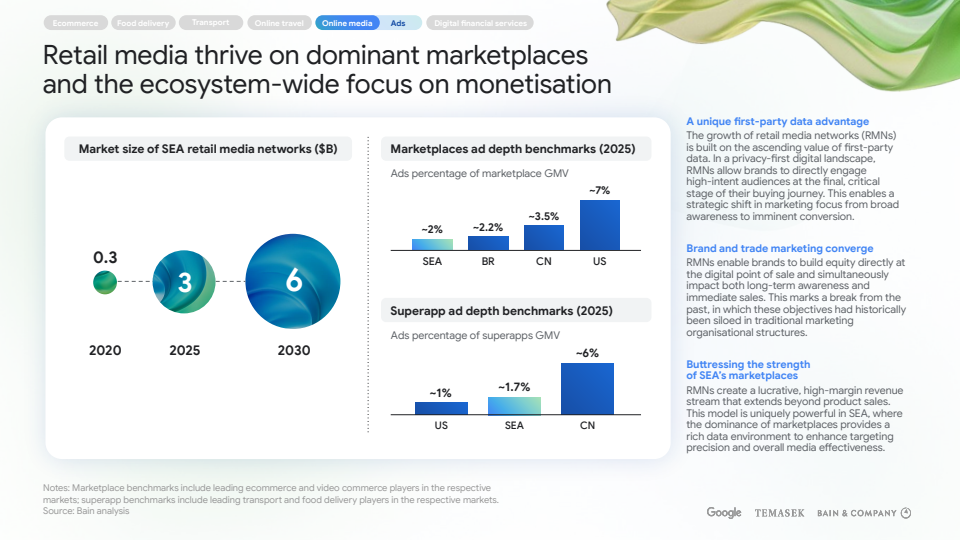 在盈利能力方面,平台普遍从“规模优先”转向“变现优先”。外卖行业通过广告、堂食券、会员订阅等方式拓展高毛利收入来源,整体接近盈亏平衡。零售媒体网络快速扩张,规模逼近30亿美元,成为平台重要的利润补充。数字金融服务则在支付、信贷、财富管理和保险等领域全面渗透,其中信贷贡献了DFS收入的大头 。
