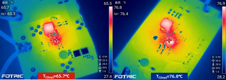 SC81340S与竞品满载温升对比(VIN=20V,VOUT=5V,竞品封装 ESOP8)