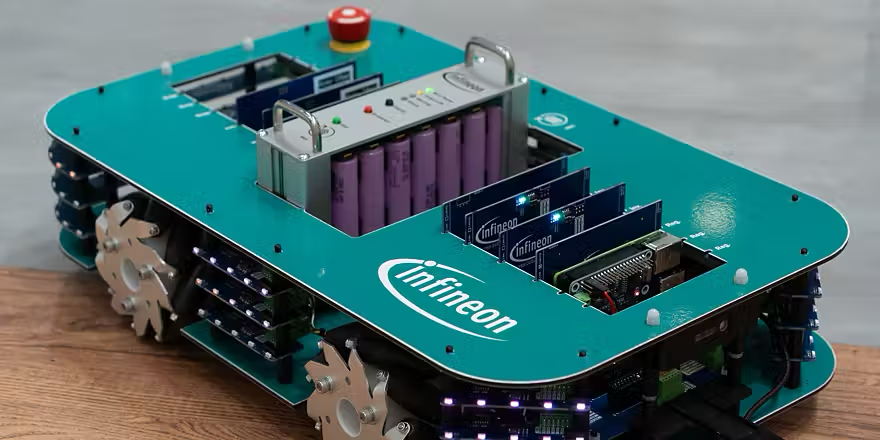 图 5: 一种可在工厂地面轻松部署的移动机器人,用于举升与运输货物。来源:Infineon