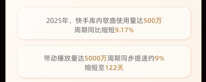 在版权合作领域,快手音乐自2021年起持续稳定投入并严格践行版权结算机制,已连续5年兑现对行业的承诺。2025年,平台合作版权方数量同比增长18%,合作规模的持续扩大。