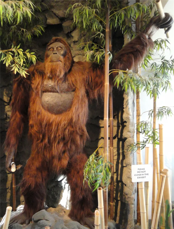 △ 步氏巨猿模型,?ALAMY STOCK PHOTO步氏巨猿是已知史上最大的灵长类动物,它们站立身高的最大预测值是3.7米(1957年的推测),体重的最大预估值是300公斤(2017年的推测),比现存的所有灵长类动物都要大许多。
