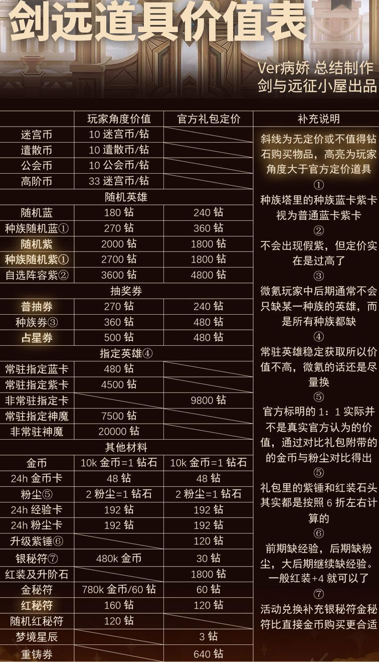 曾在网上见过他人整理的价值表,但版本较旧,且部分内容不尽合理。本文经反复比对多项数据后得出,虽力求严谨,但仍属个人见解。若持不同看法,欢迎留言交流探讨,共同完善认知。