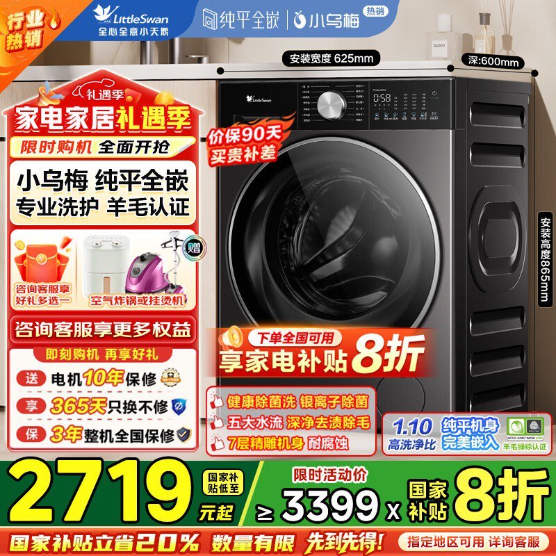 小天鹅小乌梅3.0轻享版洗衣机低至2608元