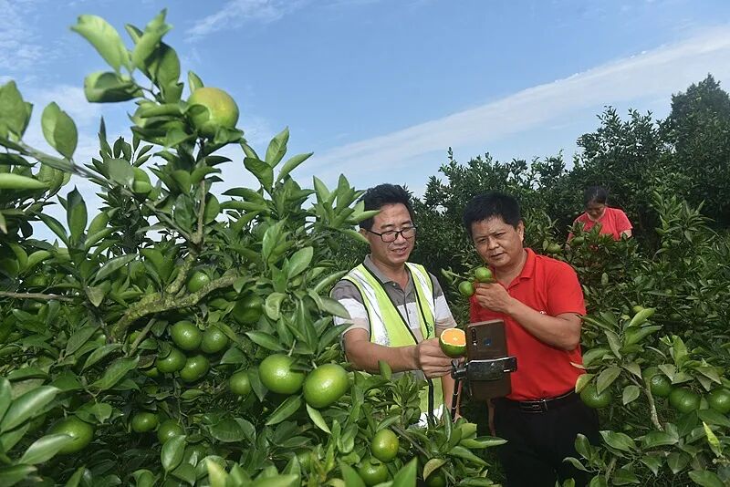 从桂林出发,向西南方向车行约两小时抵达罗城,再驱车约40分钟进入东门镇寨洲屯的山坳里,便可见到中欧鲜农数字电商产业园的蜜桔种植基地。