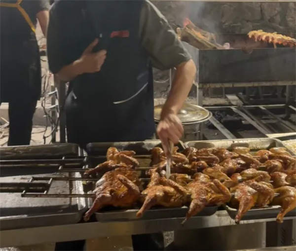 最近他每天能卖上百只烤鸡,一只烤鸡卖68元,同时也有做烧烤,日均总营业额能上万,但不是净利润。
