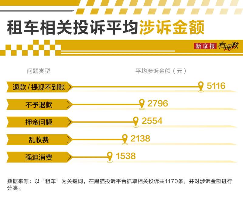 除了一两百的租车费,加上杂七杂八的其他费用,在投诉平台 【下载黑猫投诉客户端】,消费者的投诉主要集中在500-1000元这个区间。低价在平台引流,然后在交车时再增加各种费用,显然已经成为一些车行司空见惯的手段。