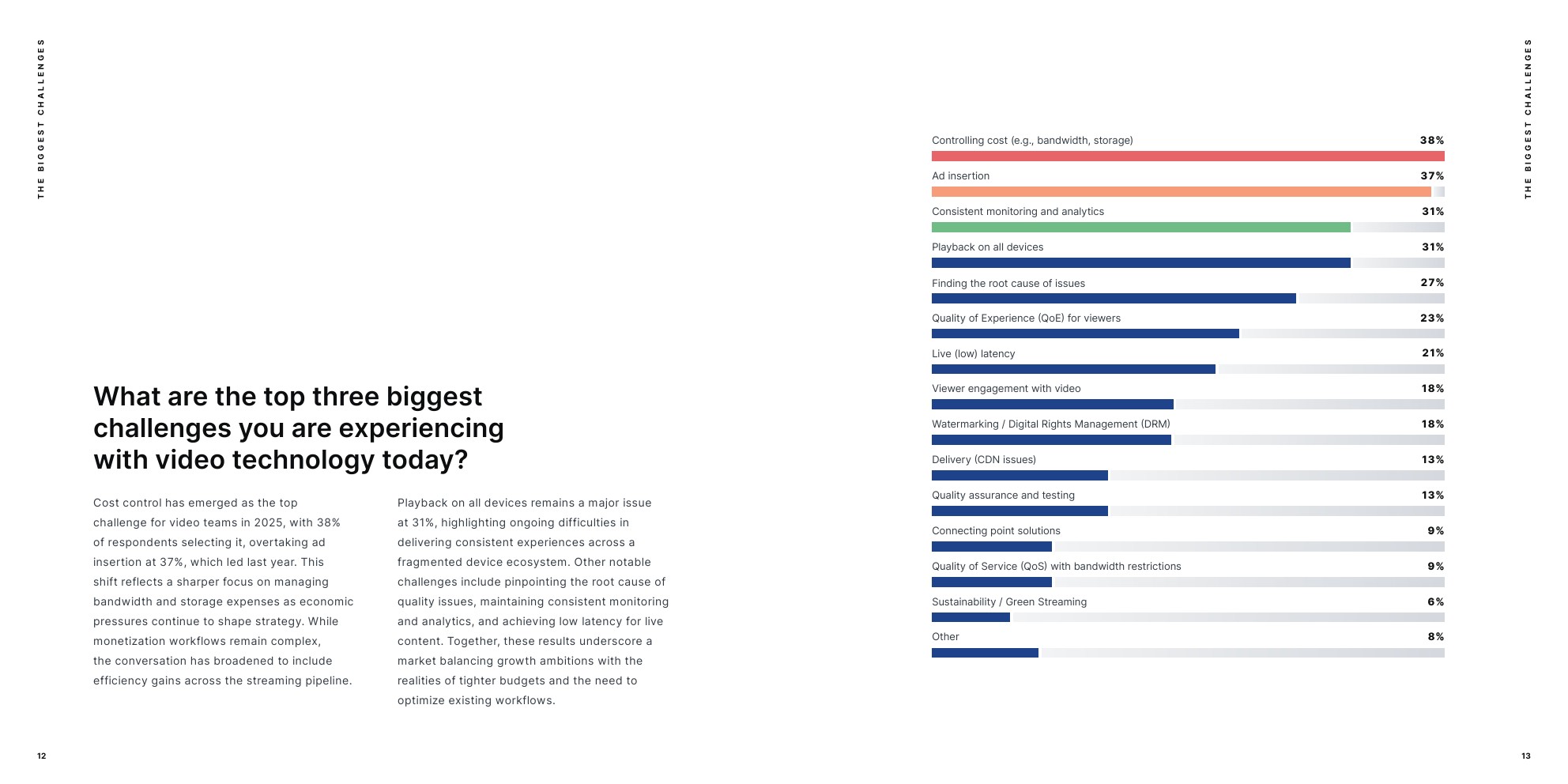 控制成本(带宽、存储)以38%成为首要挑战。