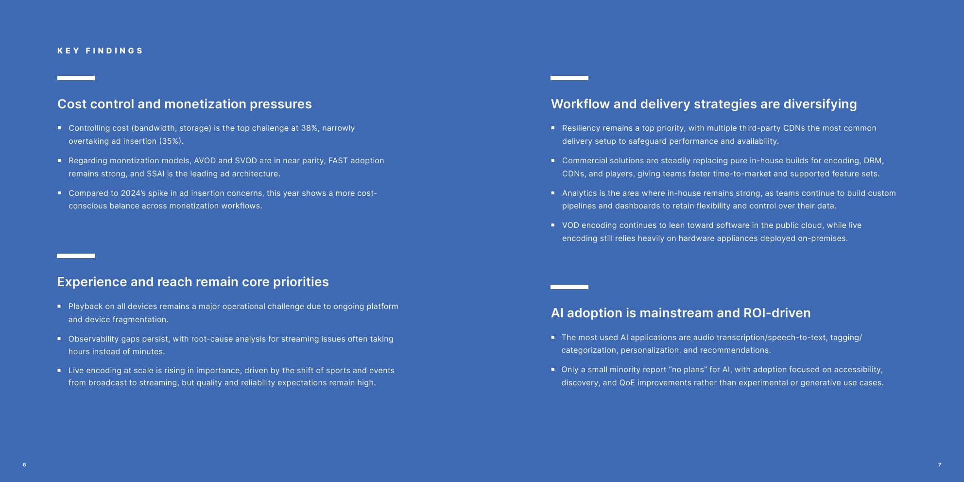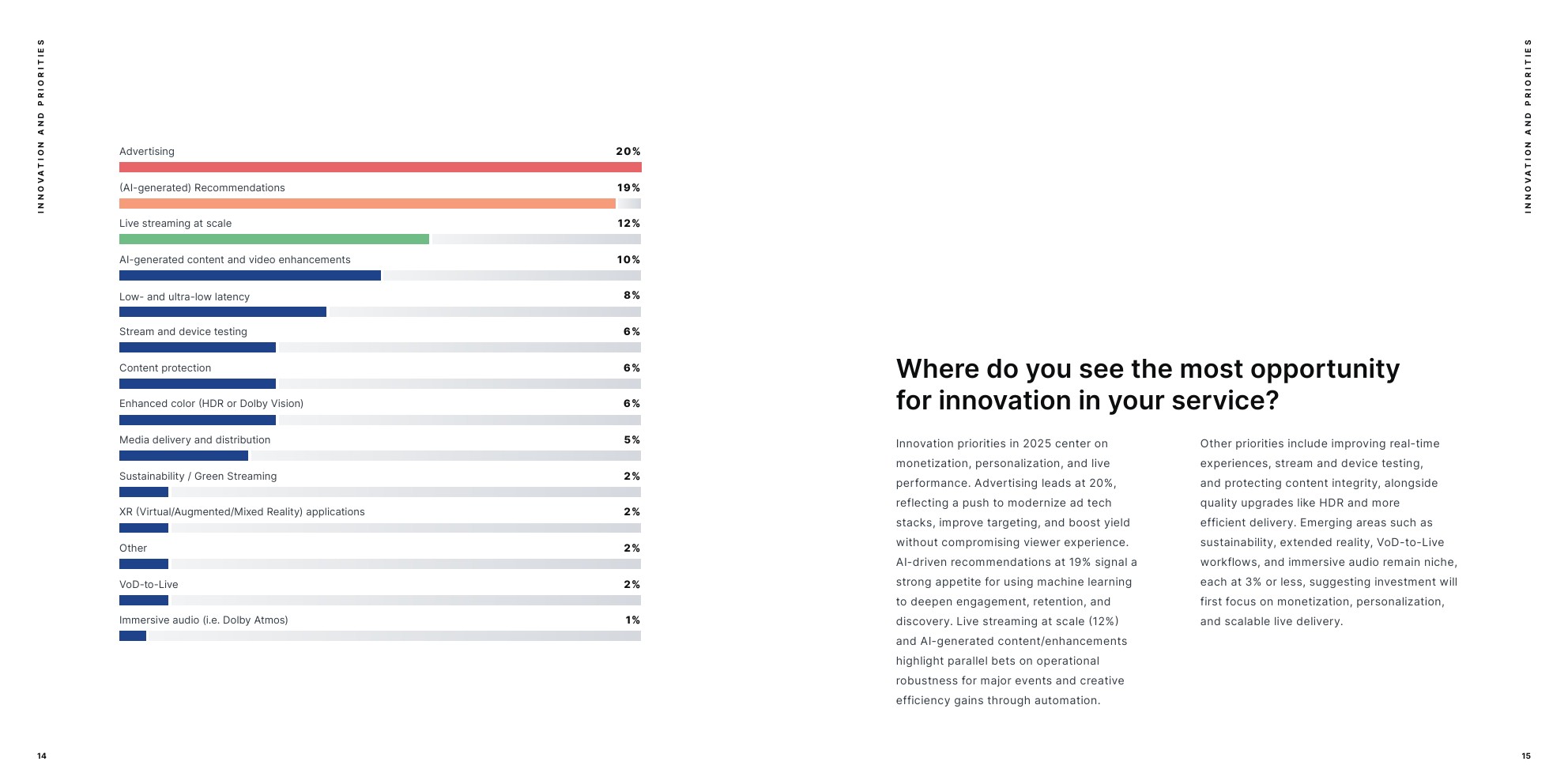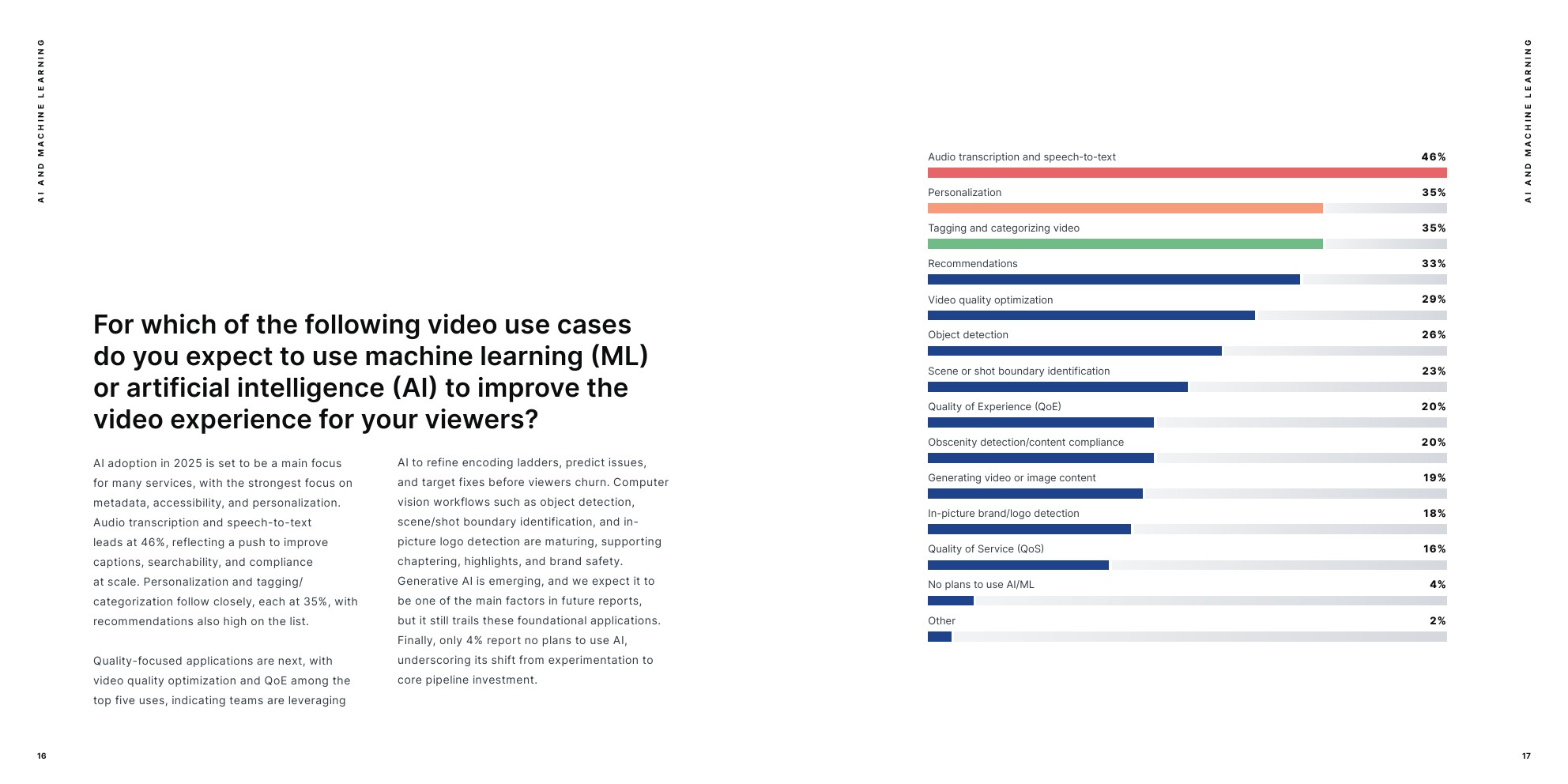 仅少数报告“无计划”采用AI,采用侧重于可访问性、发现和QoE改进,而非实验性或生成式用例。