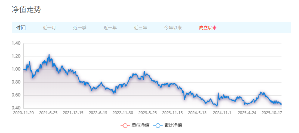 截至2025年12月23日,申万菱信医药先锋A年内净值下跌13.24%,跑输业绩比较基准逾20个百分点。成立5年多,该基金净值累计下跌53.28%。