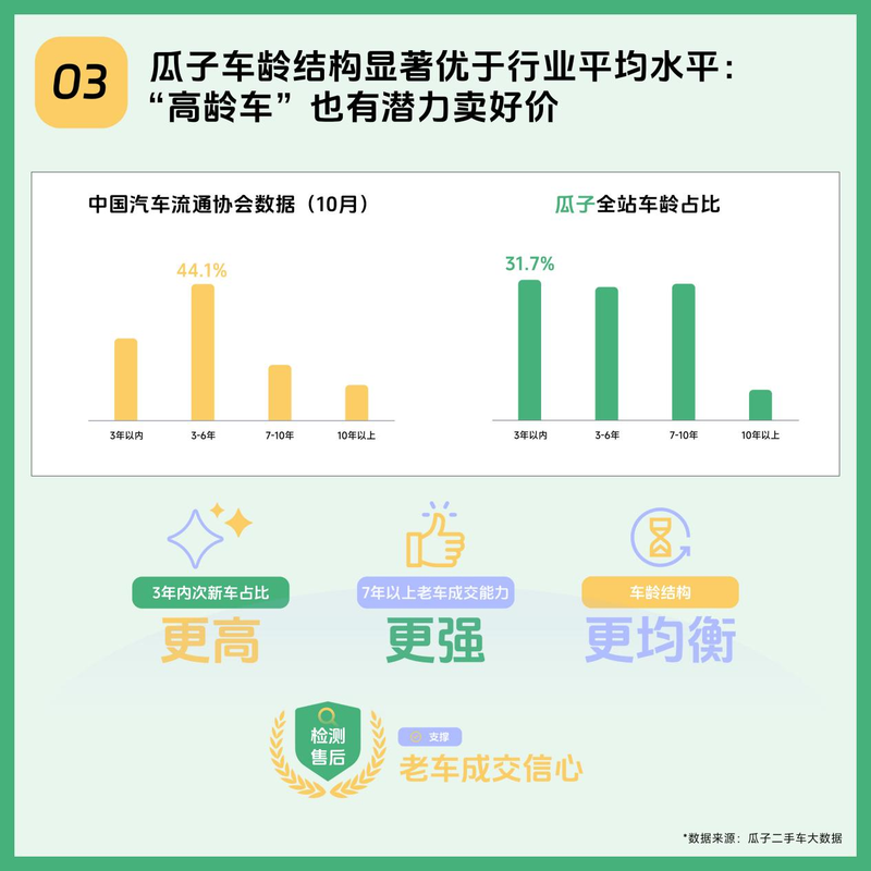 3.瓜子车龄结构显著优于行业平均水平:“高龄车”也有潜力卖好价