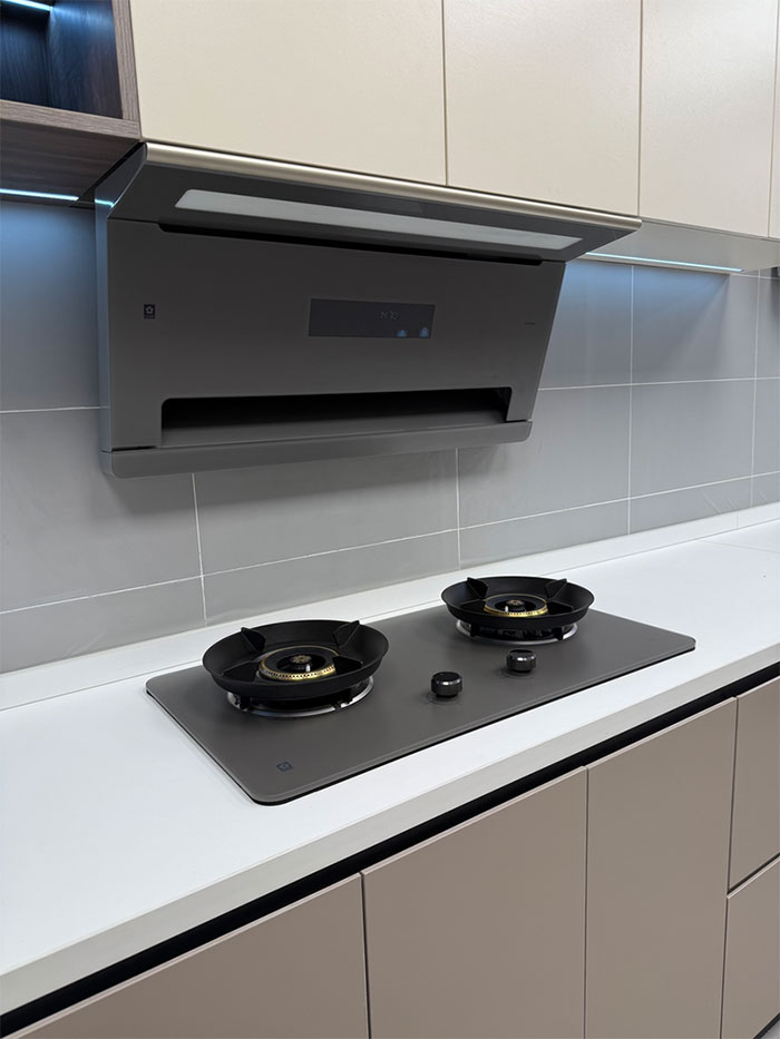 樱花御风吸油烟机以强劲的功能,为家居空间带来清爽的品质体验,让每一次烹饪都轻松愉快,让家的烟火气温柔而舒适。
