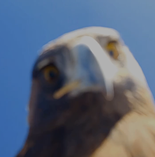 老鹰用利爪抓住无人机后立即带着它飞向山顶,降落后很是疑惑地盯着它看个不停,最终放弃了这个没法食用的猎物,而无人机摄像头拍到了全程。