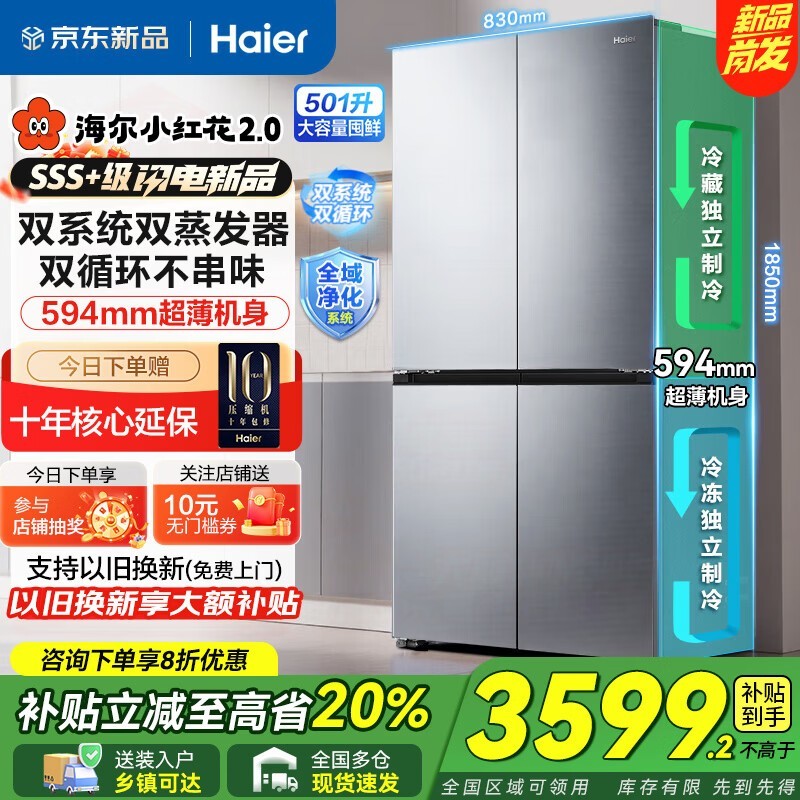 海尔501升超薄冰箱直降1100