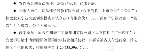 另外,良品铺子在公告中称,此次涉及诉讼对公司的生产经营和当期损益无重大影响。截至公告披露日,上述案件尚未开庭审理,法院尚未确定开庭时间,此次诉讼最终结果尚无法判断。