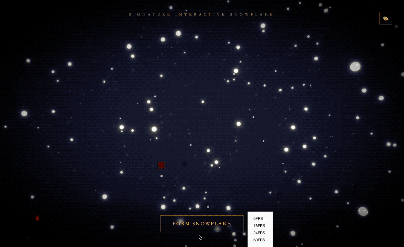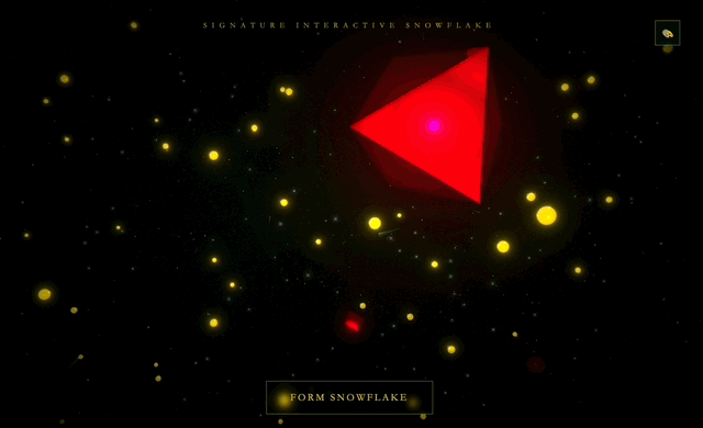 雪花结晶体的结构可以更清晰的展示出节点,这样,就可以用红宝石不同的年度总结板块。点击时,散落在夜空中的粒子和红宝石,共同组成了一朵雪花——就像一个个重要的事件、习惯、统计数字,构成了这一整年。