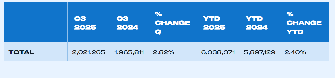 根据英国汽车制造商和贸易商协会(SMMT)发布的最新数据,英国二手车市场第三季度增长2.8%,交易量突破两百万辆(2,021,265)。这是自2021年以来最强劲的第三季度表现,并创下连续11个季度的增长纪录,主要得益于新车市场复苏带来的稳定车源供应。