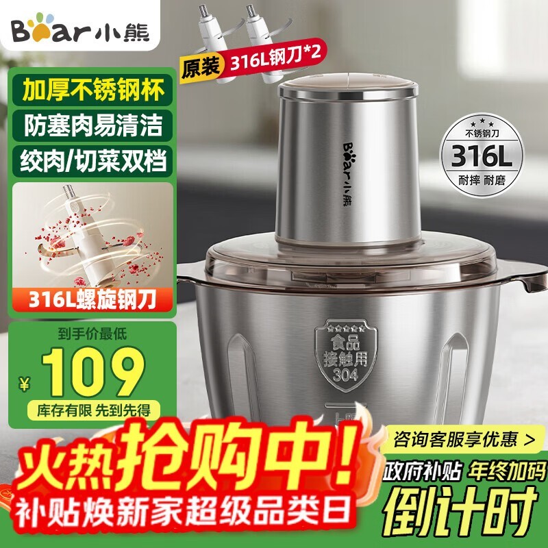 小熊QSJ - L03K3绞肉机大促,多档满减到手仅128元