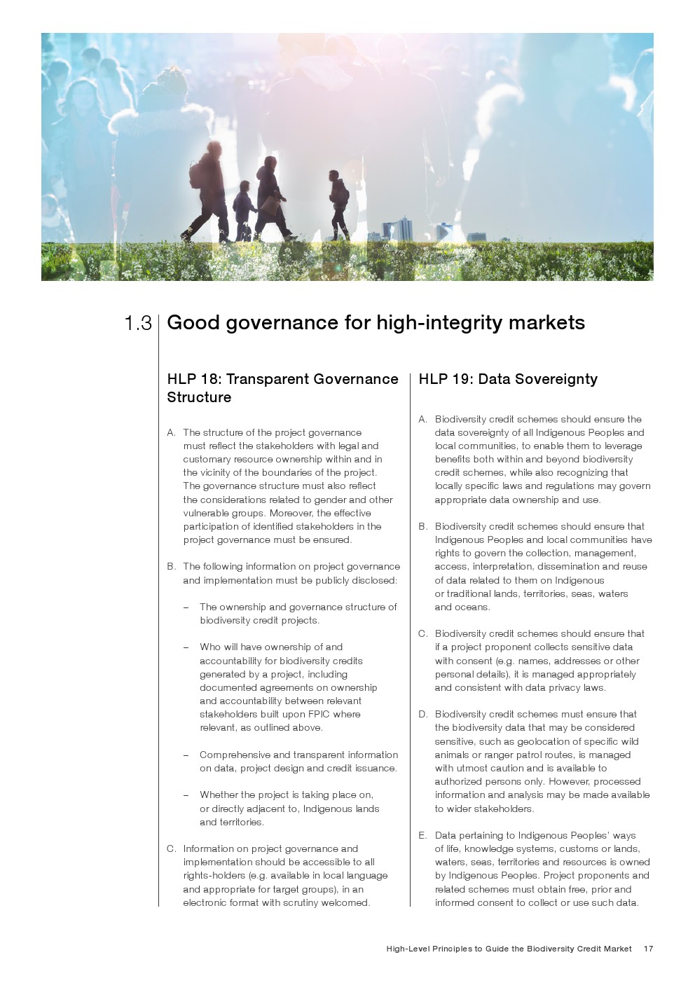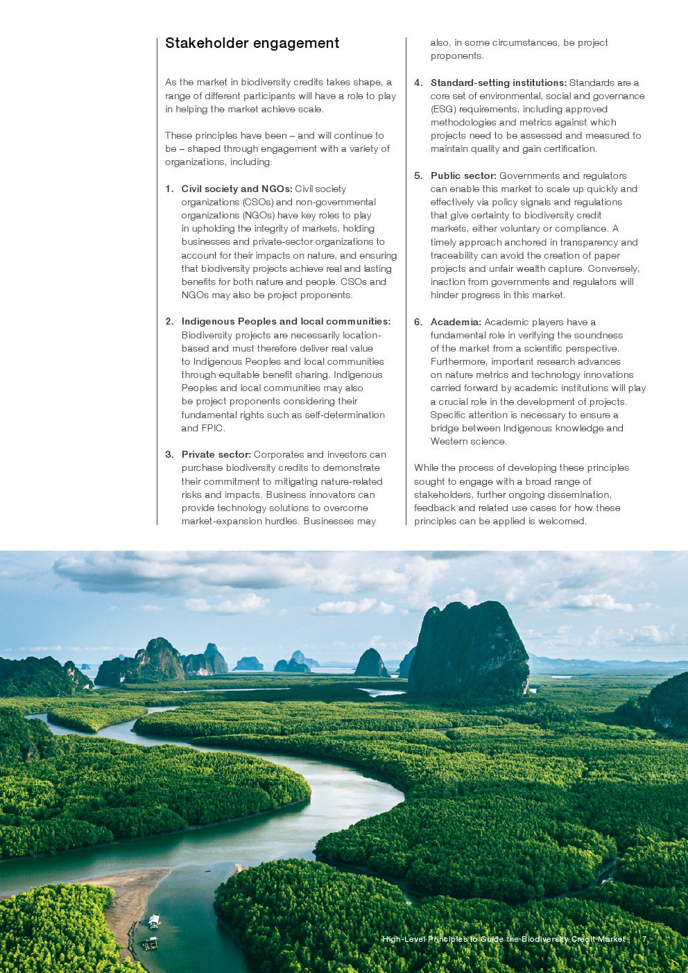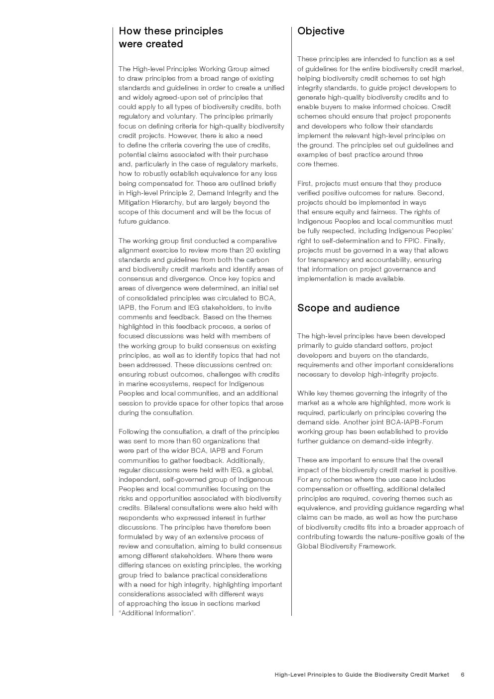 最后,这些原则是与包括民间社会、原住民和当地社区、私营部门、学术界和标准制定机构在内的广泛利益相关方合作确定和设计的。这些原则将随着市场的发展而持续演进,并反映新的和更新的完整性标准的出现与采用。