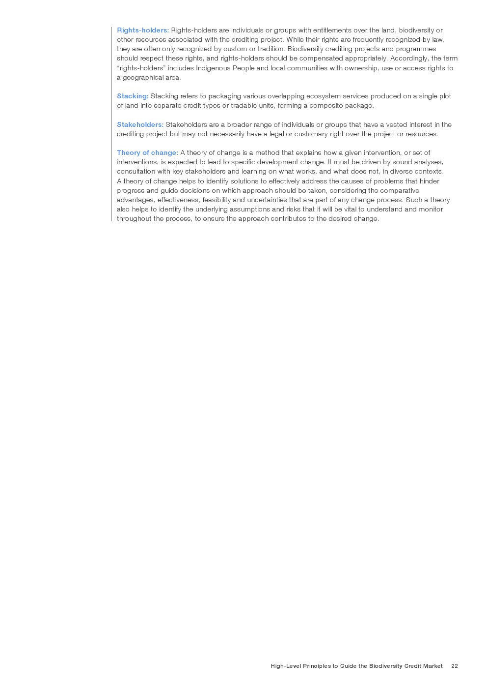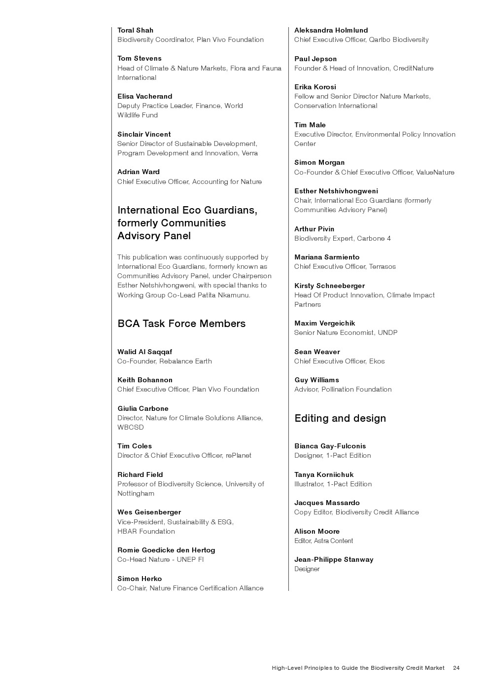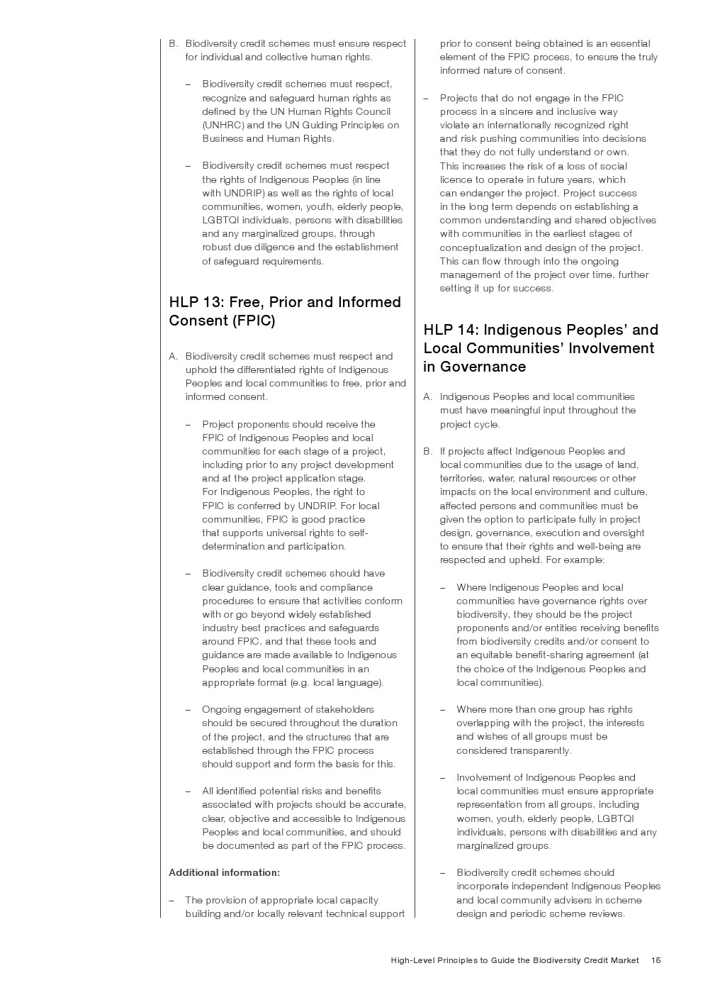 最后,这些原则是与包括民间社会、原住民和当地社区、私营部门、学术界和标准制定机构在内的广泛利益相关方合作确定和设计的。这些原则将随着市场的发展而持续演进,并反映新的和更新的完整性标准的出现与采用。