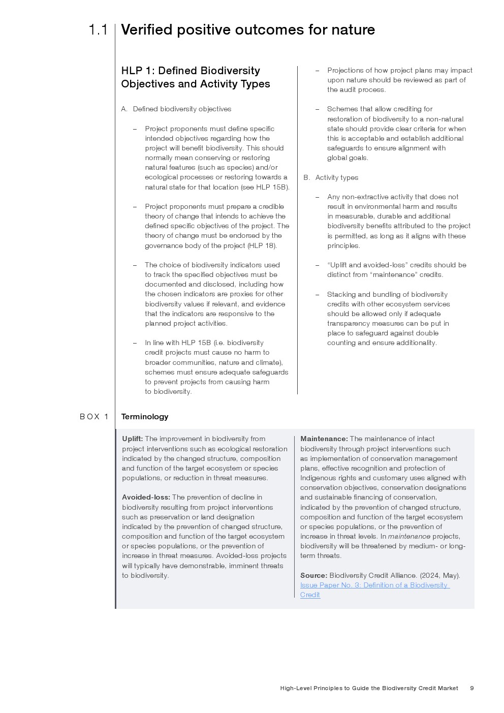 市场机制需要获得广泛信任,才能实现大规模采用和长期可持续性。只有当相关参与者能够证明生物多样性信用体系是有效的,并且符合自然与人类的社会目标时,这些要素才能实现。此外,这一新兴工具还必须证明,其已从自愿碳市场的发展以及其他保护和恢复活动的经验中吸取了教训。因此,建立一个公认的高质量、高完整性框架至关重要。