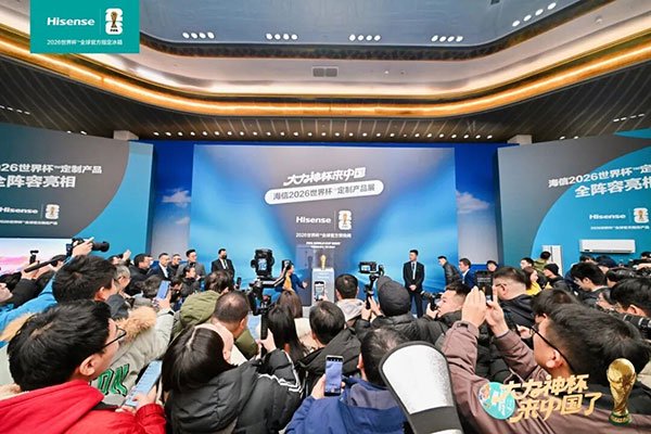 与此同时,一场融合体育、科技与生活的叙事在青岛展开——象征世界足坛最高荣耀的大力神杯来到中国,面向公众近距离展出。与这座金色奖杯共同呈现在公众眼前的,是全阵容的海信2026世界杯定制产品。这是海信第3次与世界杯结缘,也是19年持续全球化的有力见证,借助全球顶级体育赛事的巨大影响力,海信的名字一次又一次地展现在全球用户面前。