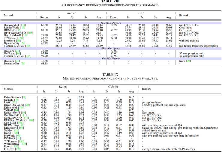 如果将这篇论文视作一次严格意义上的实验研究,那么它的实验结果并不是某个模型在某个指标上的提升,而是一组关于整个自动驾驶世界模型研究方向有效性与局限性的实证性结论。这些结论来自对大量已有实验结果的系统重组,而非主观推断。