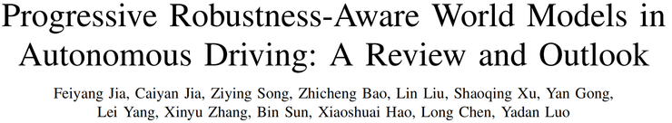 正是在这一背景下,北京交通大学研究团队联合小米汽车自动驾驶与具身智能算法团队,在论文《Progressive Robustness-Aware World Models in Autonomous Driving: A Review and Outlook》中,对自动驾驶世界模型进行了不同于传统综述的系统性审视。