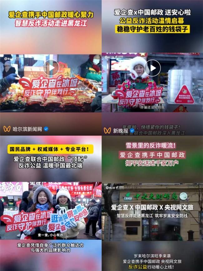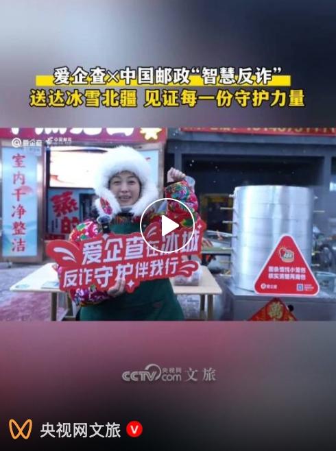 线上反诈声量持续发酵,线下落地实践更具人文温度。12月17日至19日,爱企查携手中国邮政、央视网文旅官方,将一场沉浸式反诈公益行动落地黑龙江。此次行动创新性打造“反诈宣传+文旅场景”融合传播体系,把智慧反诈理念悄然融入北疆的市井烟火与文旅体验之中,让安全认知随场景自然渗透。