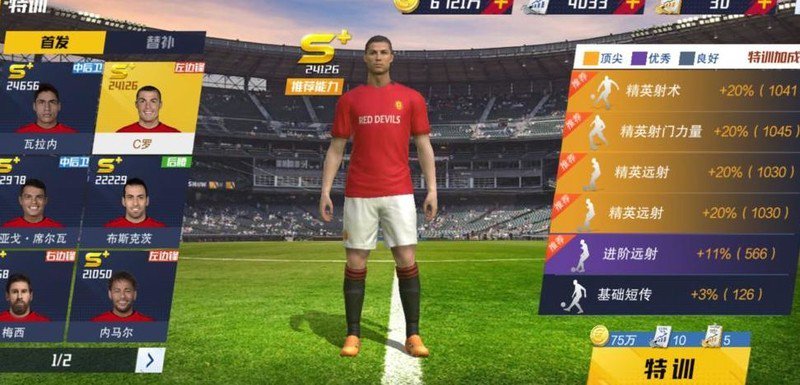 选择精训项目应根据球员自身特点和场上位置综合考量。以C罗为例,他具备头球高手和远射高手两项技能,若担任前锋,建议优先强化头球能力;若作为边锋,则更推荐提升远射。同理,中场或后卫球员也应依据其自带技能进行选择——拥有传球特长的,可主攻视野与弧线;擅长抢断的,则应侧重抢断、拦截与盯人能力的提升。精训项目共有六项,需在基础训练达到一定水平后逐步解锁。因此,在进行专项精训的同时,不可忽视日常的基础训练,只有两者同步推进,才能全面提升球员的综合实力,实现技能优化与战术适配的双重目标。