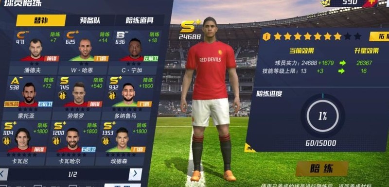 游戏中提升球员实力的方式多种多样,包括等级突破、常规训练、基础培养、精细特训、升星以及专项特训等。前三种方式较为常见,与传统卡牌手游类似,此处不再赘述。建议优先将高级培养材料用于阿圭罗、内马尔、博格巴等顶级球星,他们通常是队伍的核心,贯穿游戏始终。待高级资源充足后,再利用体力刷取低级材料补足其他球员,实现整体战力稳步提升。