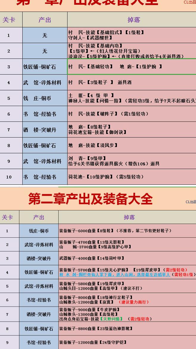 第一章守剑人建议等级超过5再前往。先通关第二关,在途中需帮助妇人送饭给其丈夫,获得针具用于开启宝箱(箱中含飞镖,建议保留用于挑战守剑人),完成任务后返回妇人处领取奖励,做好充分准备后再进行后续战斗。