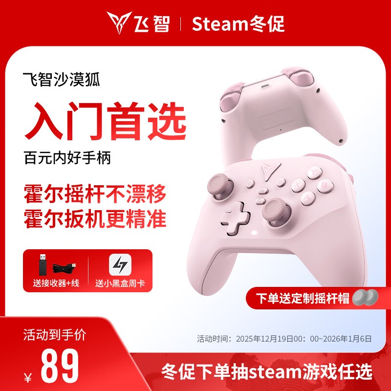 飞智沙漠狐暮光粉手柄特惠,到手仅89.9元畅玩多设备