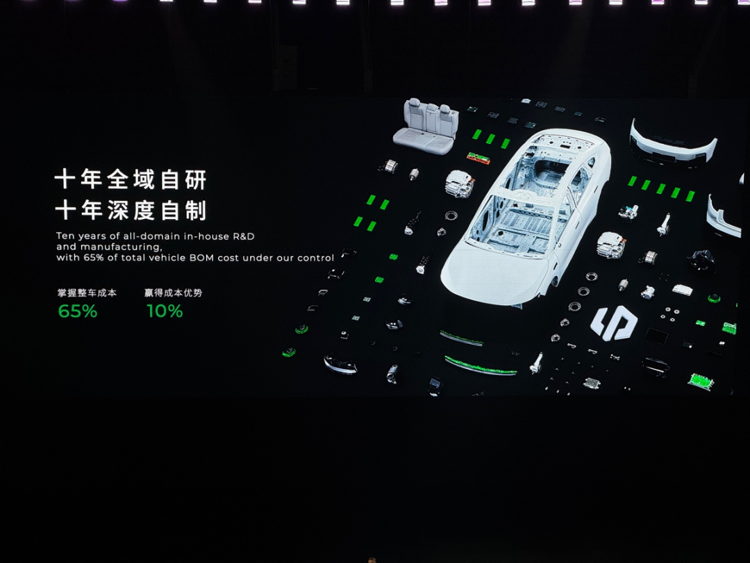 坚持全域自研,占整车成本65%的新能源核心技术全覆盖。零跑将全域自研作为企业发展的核心驱动力,初创期研发人员占比高达90%,至今仍保持在80%的高水平。十年来,零跑研发体系全面覆盖整车架构、电子电气架构、电池、电驱、座舱系统、辅助驾驶系统等关键领域,自研自造占整车成本的65%。