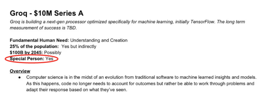 与此同时,能够获利的当然也有在 Groq 创始阶段火眼金睛的投资人。硅谷正在流传的是斯里兰卡裔风投人 Chamath Palihapitiya 在 2017 年给 Groq 在 A 轮投资时的评价: