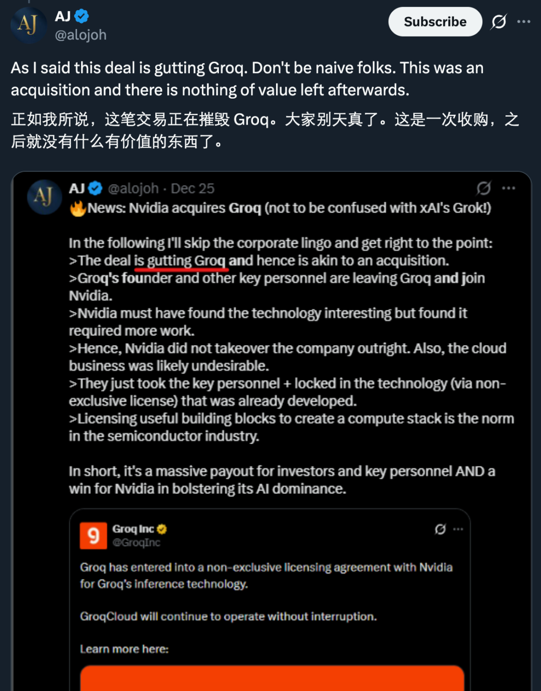 现在,情况已然明了:虽然双方都强调这不是一场「收购」,但从实际结果来看,Groq 好像也没剩下什么。