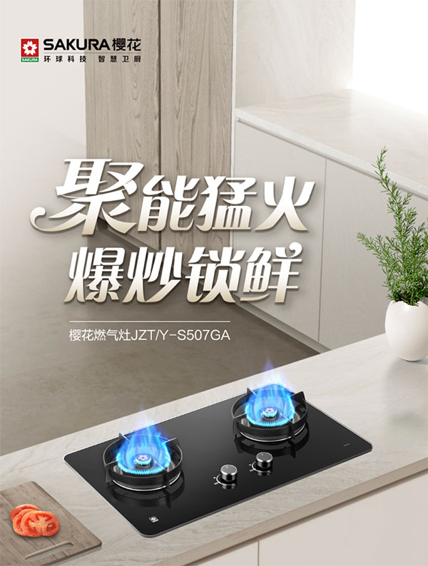 樱花燃气灶S507GA以精准可控的火力,让美味与效率并存,轻松满足全家人的味蕾享受。