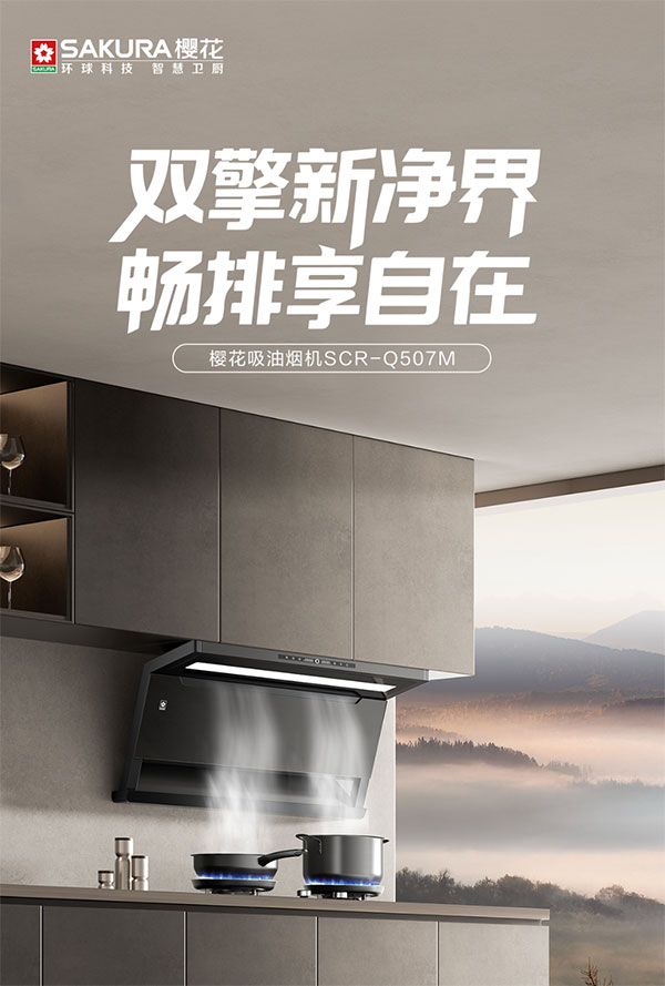 樱花吸油烟机Q507M以洁净常新的畅排体验,还原厨房空间的澄澈整洁,让下厨变得轻松而愉快。