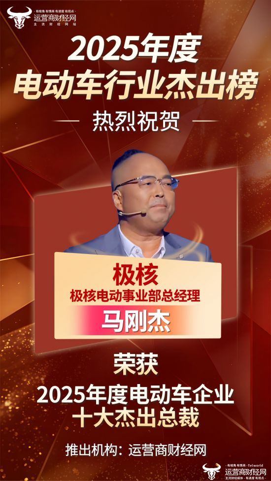 2025年即将接近尾声,运营商财经网已正式开始打造2025年各行业的系列杰出榜。其中,“2025年度电动车十大杰出总裁”已经确定,极核电动事业部总经理马刚杰荣获此奖。