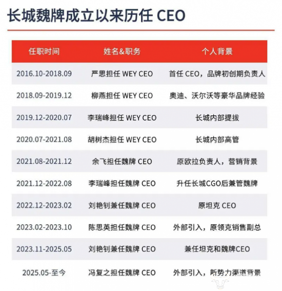 对此,2025年12月22日,魏建军在与媒体交流时表示:“有人说我们(魏牌)换了不少的CEO了,的的确确是这么回事,不是我们辞退人家,不让人家干了,是他们自己感觉到压力特别大。”