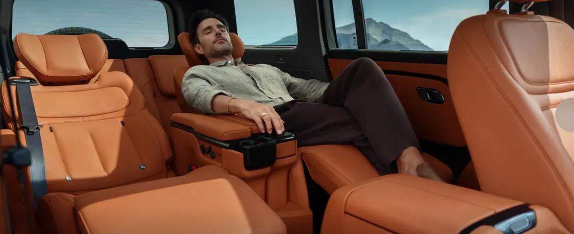 来到车内我们可以看到,新车延续了极石 01 的整体设计,配备 15.7 英寸悬浮中控屏和 12.3 英寸液晶仪表,全车门均采用电吸门设计,配备 Nappa 皮革座椅,支持通风、加热等特性,后排座位还可选用 15.7 英寸 3K 娱乐屏。