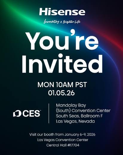 全球消费电子顶级盛会CES 2026即将拉开帷幕。12月29日,据知情人透露,作为RGB-Mini LED技术的开创者和引领者,海信将携全新一代RGB-Mini LED技术和新品亮相CES。海信CES邀请函上的信息显示,海信将在美国当地时间1月5日举行新闻发布会,很可能会再次实现中国品牌在高端显示领域对日韩品牌的代际领先。届时,海信、三星、索尼、LG等全球显示巨头将齐聚展会,一场围绕RGB-Mini LED技术的全球大战即将上演。